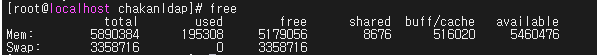 linux의 경우 free를 이용해 메모리를 확인할 수 있었다. free가 아닌 top 명령어를 입력하면 memory 외에 다른 값들도 확인 할 수 있었지만 필요한건 메모리뿐이였기때문에 free면 충분할 줄 알았다.