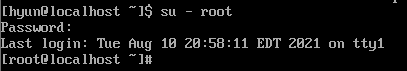 일반 계정에서 root 계정으로 바꿀땐 패스워드를 입력해주어야한다.
