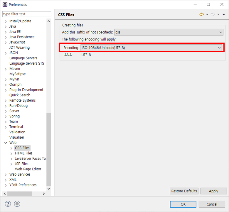 여기서부터는 개인적인 호기심으로 초기 설정되어 있었던 인코딩 방식인 MS949와 바꿔준 UTF-8 방식을 찾아보았다.