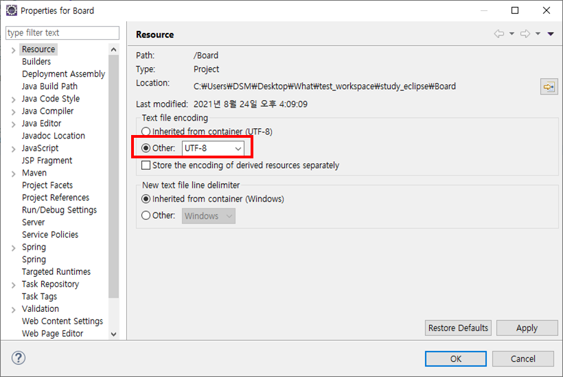 이부분도 eclipse 내에서 설정을 바꿔줘야한다.